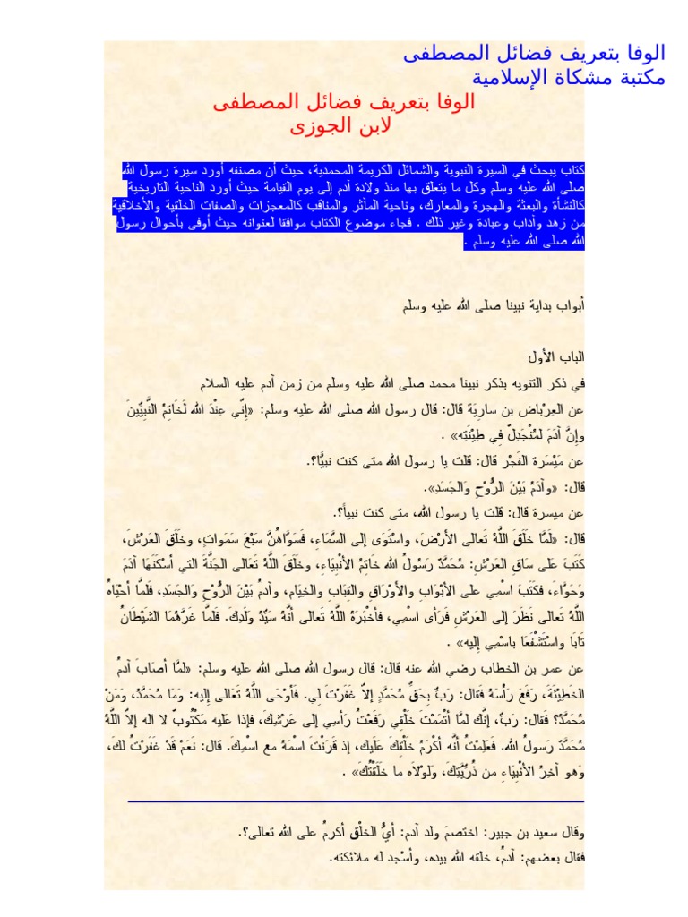 الوفاء بتعريف فضائل المصطفى لابن الجوزى
