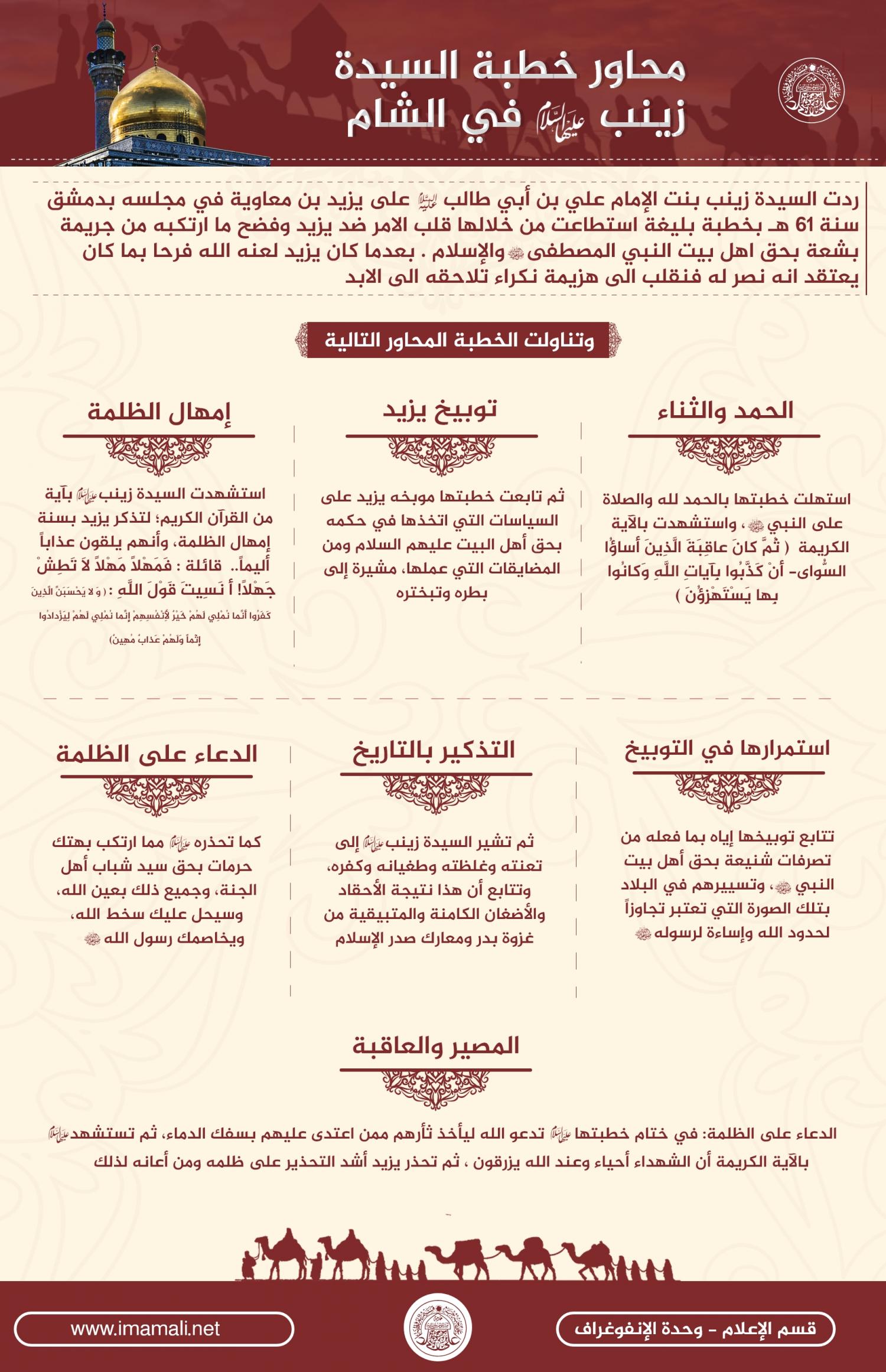 سلسلة محاضرات 1 خطب السيدة زينب عليها السلام مع سماحة الشيخ زمان الحسناوي 1442 ق. شرح خطبة السيدة زينب في مجلس يزيد قبل أن نبدأ بشرح بعض كلمات هذه الخطبة نجلب إنتباه القارئ الكريم إلى هذا التمهيد. خطبة السيدة زينب بنت علي بالشام.